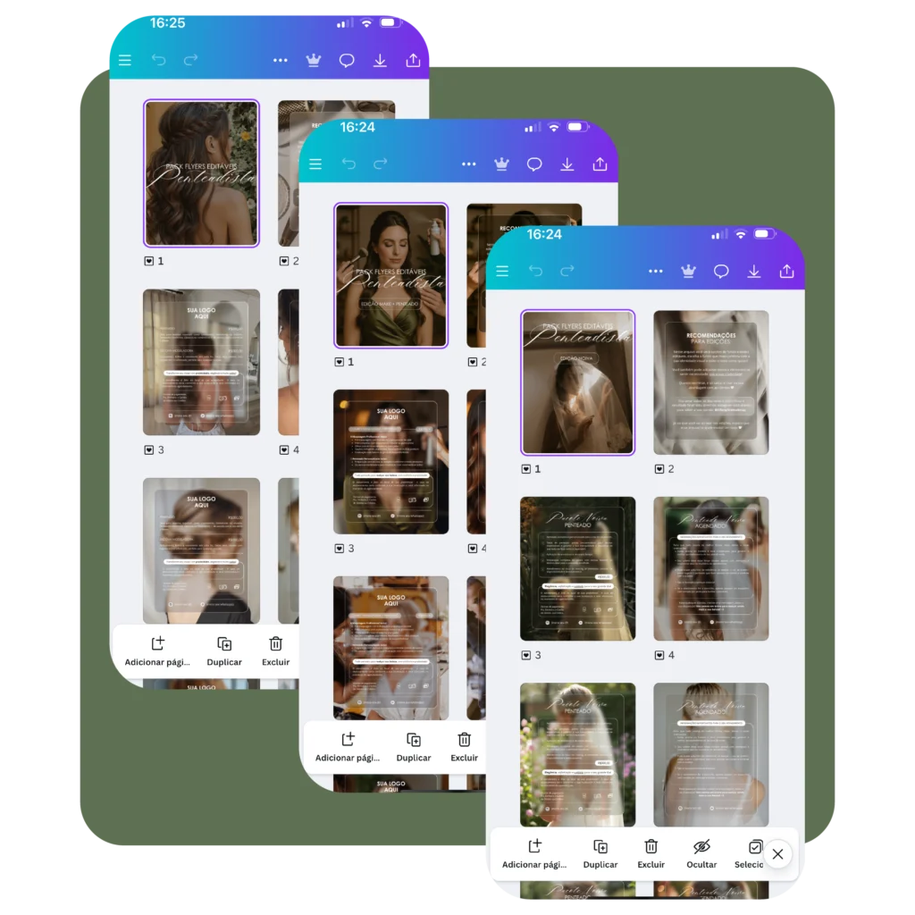 O Pack Penteadista inclui 2 modelos com 10 variações de fundos, perfeitos para adaptar ao seu estilo ou ao momento.